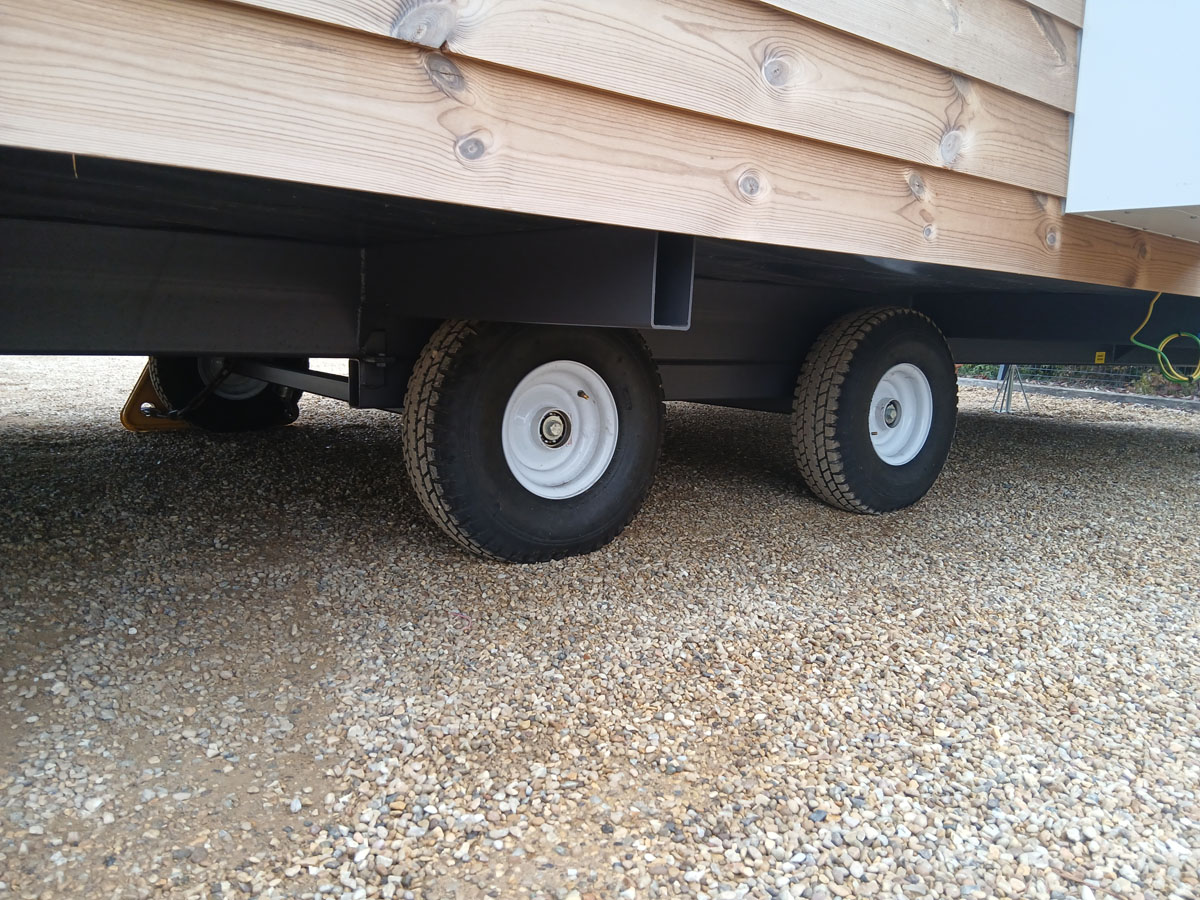 Steel box frame chassis on twin axle with towing arm (for siting purposes)