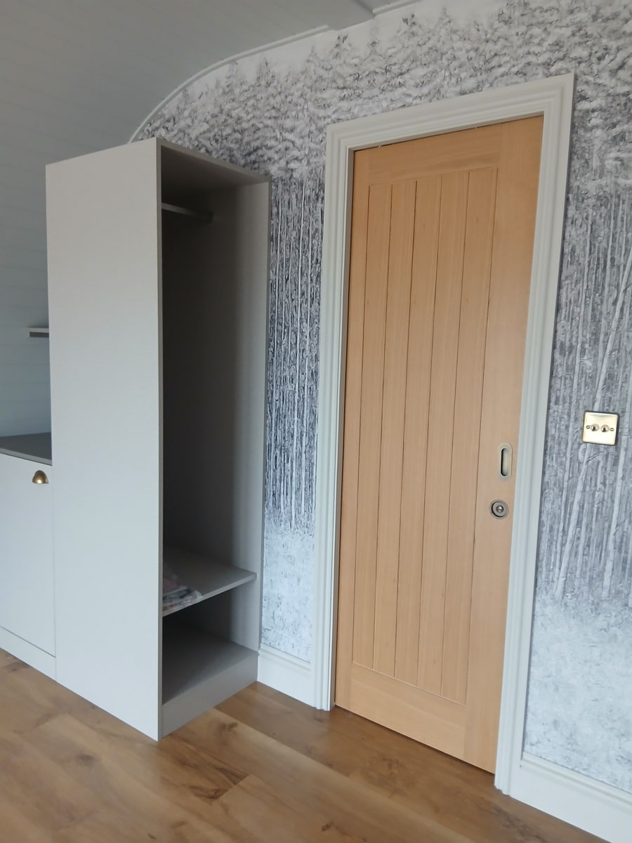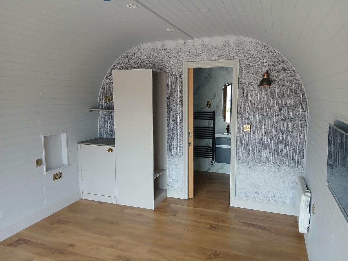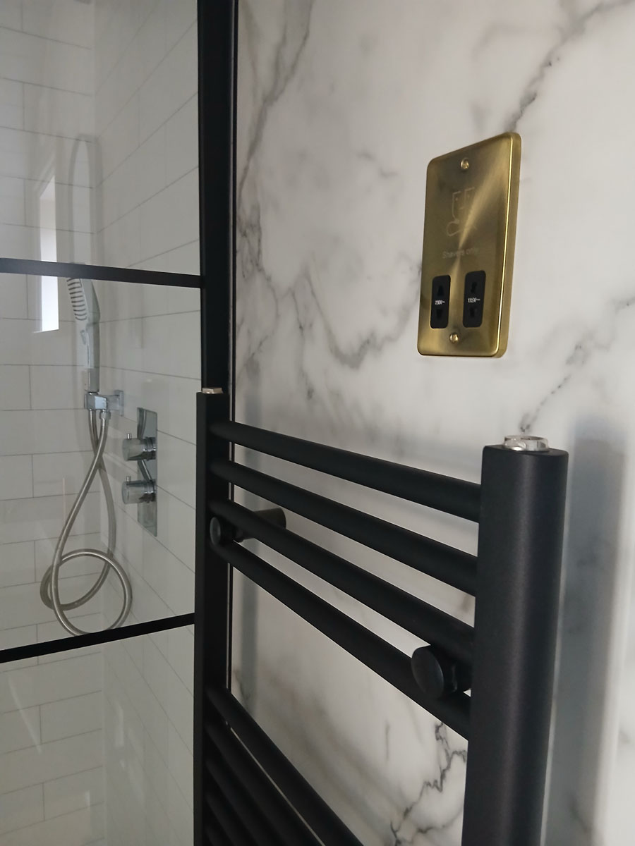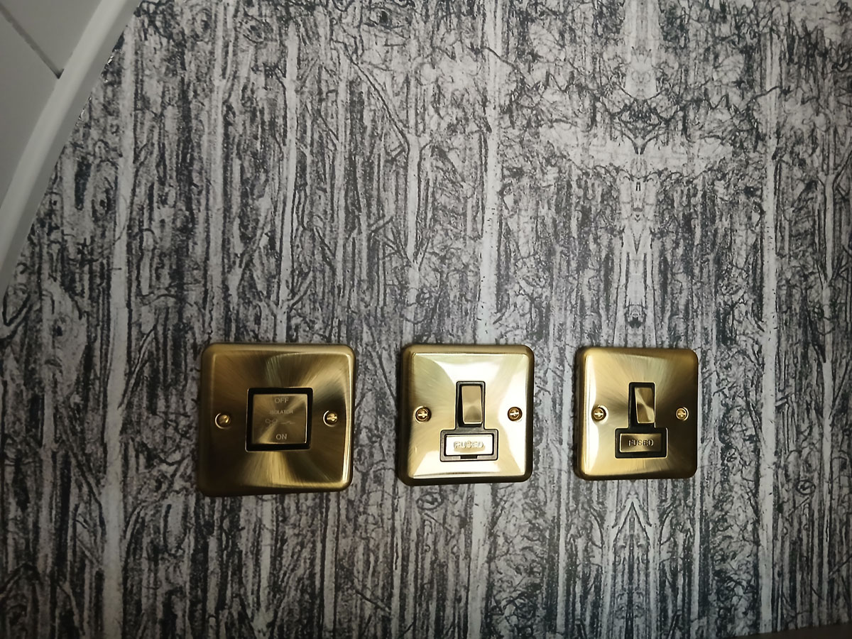 3 twin sockets, wall light, downlights with wall and bedside switches